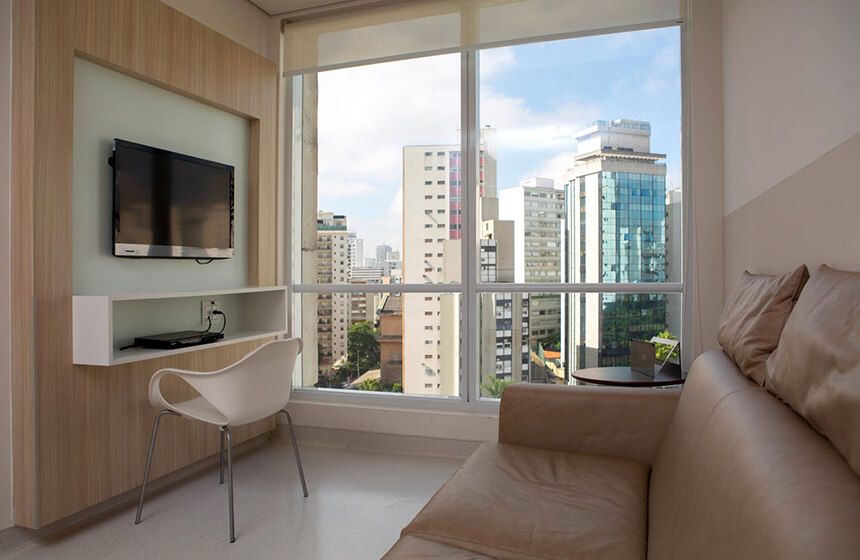Televisão a cabo com controle remoto, telefone, ar-condicionado, cofre, wi-fi, poltrona ou sofá-cama para acompanhante, mesa de refeições, frigobar, armário e banheiro privativo equipado com secador de cabelos e barras de segurança são as principais comodidades dos leitos do Samaritano Higienópolis. Os apartamentos VIPS dispõem ainda de sala e banheiro privativos, duas TVs a cabo, closet e automação integrada.